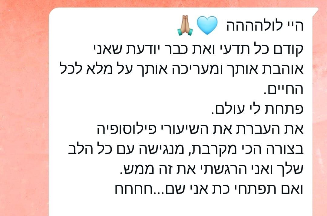 שמי לולה. נולדתי בירושלים ואני גרה ביפו. בת 36. עוסקת ביוגה כ-16 שנים.