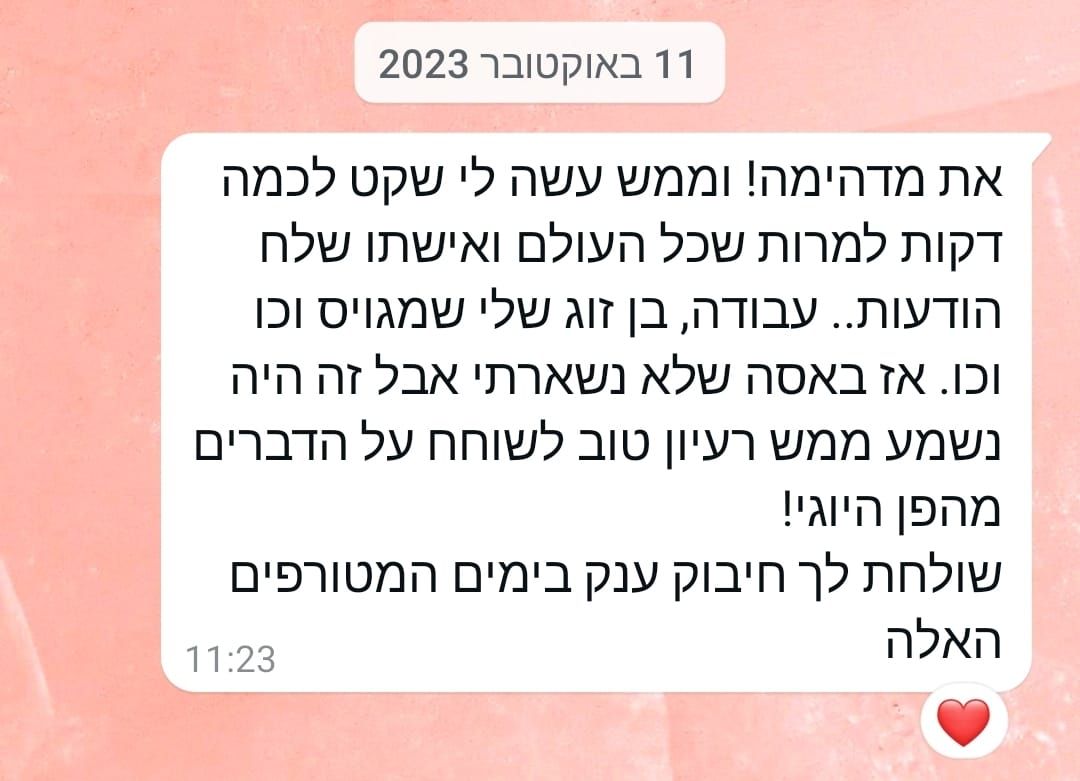 מקבלת ליוגה תרפיה באופן פרטני ועל בסיס דאנה.